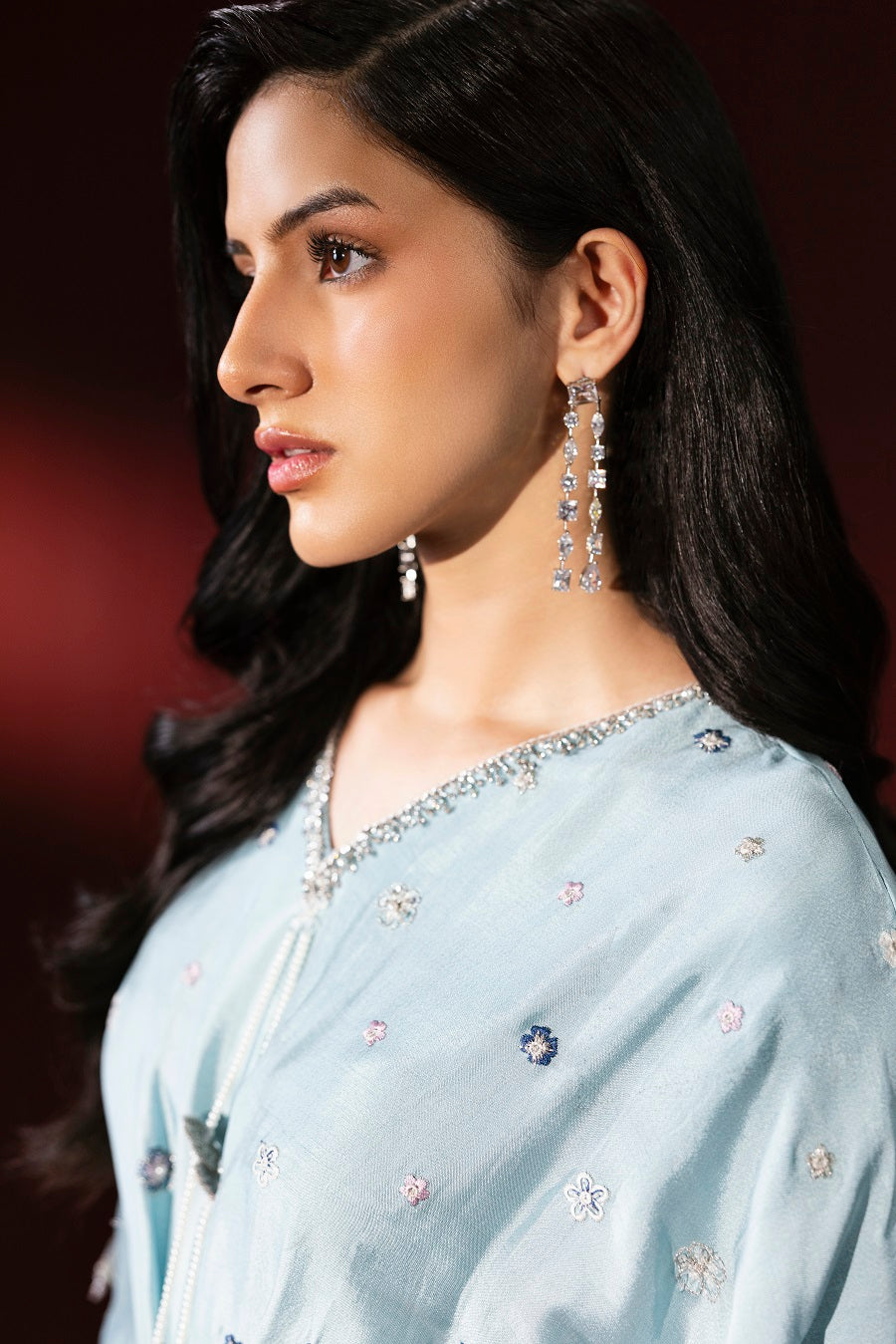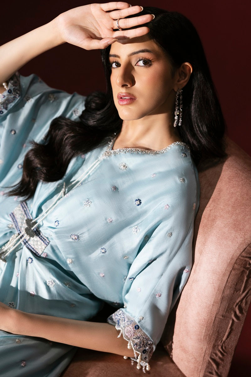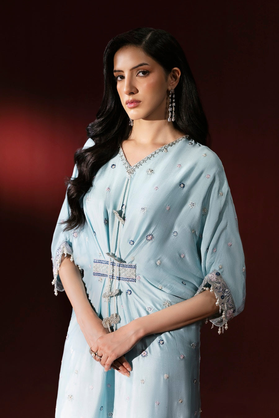 Dress Swan Kaftan Discover timeless elegance with the Dress Swan, a classic kaftan made from pure embroidered silk. Adorned with intricate pearls, sequins, and exquisite Adda work, it features delicate tassels on the sleeves, daman, and neckline for added charm. Perfect for special occasions, this handcrafted masterpiece offers luxurious comfort and sophistication, ensuring you shine with every graceful step.